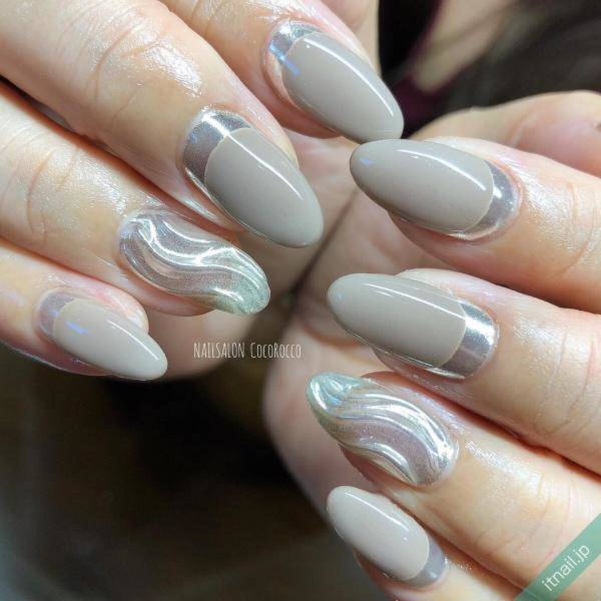 シルバーアクセサリーのような模様のミラーネイル シェラックでもできます ハンド ジェルネイ Jamspark所属 Jams Parkのネイル デザイン ミニモ